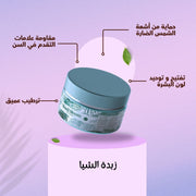 زبدة الشيا هي مستحضر تجميل طبيعي مستخلص من نواة ثمرة شجرة الشيا، وتحتوي على العديد من الفيتامينات والعناصر الغذائية والمعادن التي تحسن صحة البشرة والشعر. تساعد زبدة الشيا في ترطيب البشرة، تقليل التجاعيد، وتحفيز إنتاج الكولاجين، كما تخفف من التهابات البشرة الحساسة والأكزيما. تعتبر فعّالة في ترطيب البشرة الجافة وحروق الشمس، وتساعد في توحيد لون البشرة والتخلص من البقع الداكنة.